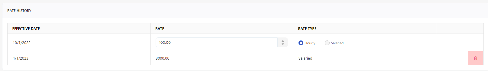 Note - Rates can be edited or deleted prior to being used in the pay cycle. If it is used, the rate will be locked and uneditable.