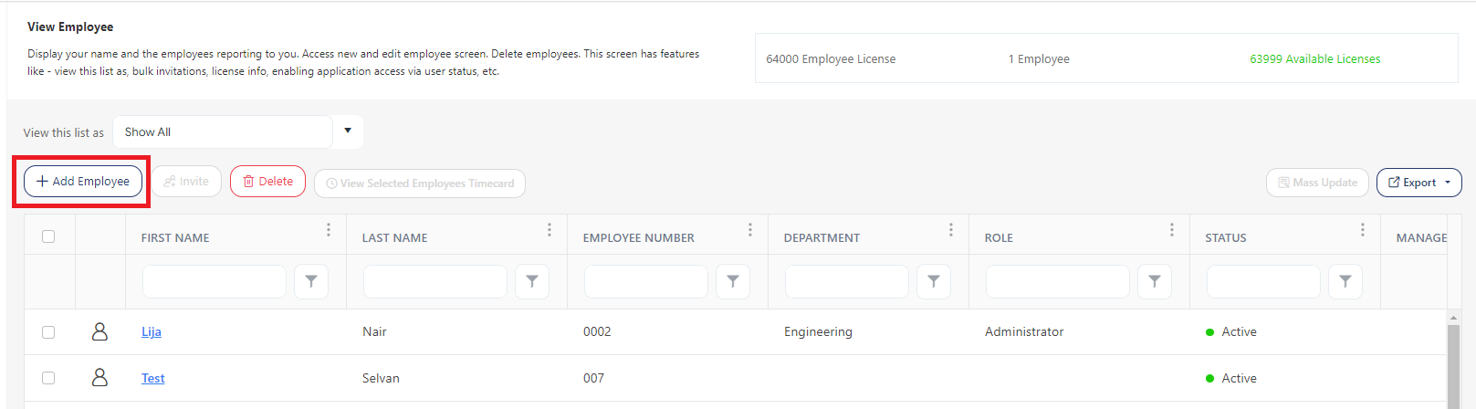 Click on Add Employee.