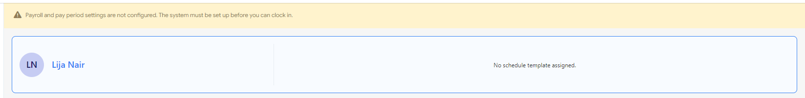 - If an employee does not have a schedule template assigned to them, the clock in/out button on the Home screen will be hidden.