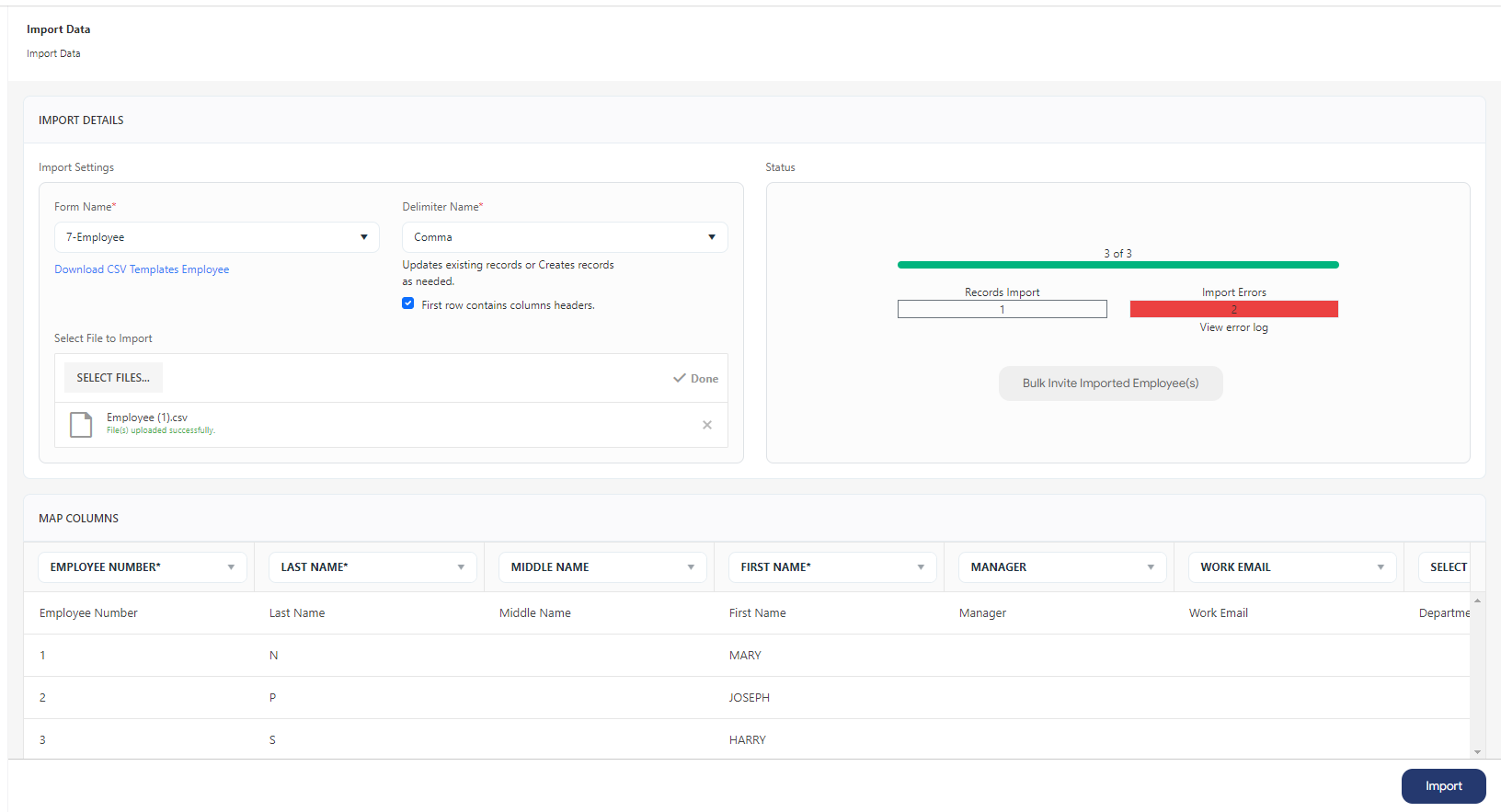 Note: Import will actually override the employee data, so make sure to double-check the employee IDs.