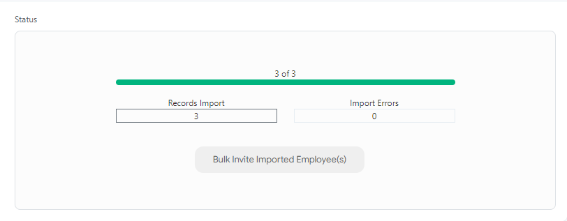 - You will see the Bulk Invite Imported Employee(s) button if a minimum of one employee is imported successfully.