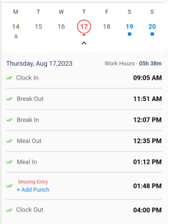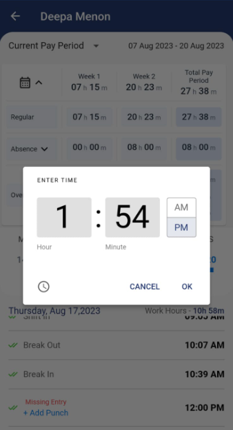 - To add a missed punch, tap on the Add Punch.