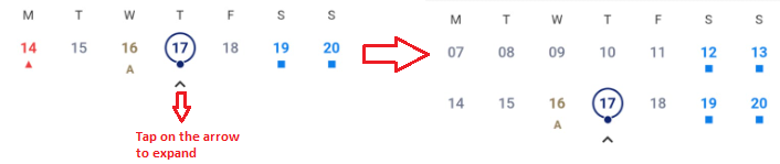- The calendar's pay period options include weekly, bi-weekly, semi-monthly, and monthly. By default, it displays data for just one week. To access the complete calendar view, simply tap the arrow to expand it.