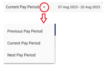 - Pay Period - By default, the timecard will display the time entries for the "current pay period". You can select Previous Pay Period or Next Pay Period using the dropdown option.