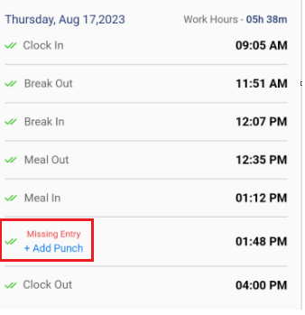 - An "Add Punch" button will be provided below the Missed Entry.