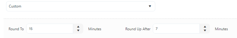 - Custom - The custom option allows you to enter Round To and Round Up After time. Set the time interval to round, as well as the cut-off point for rounding up.