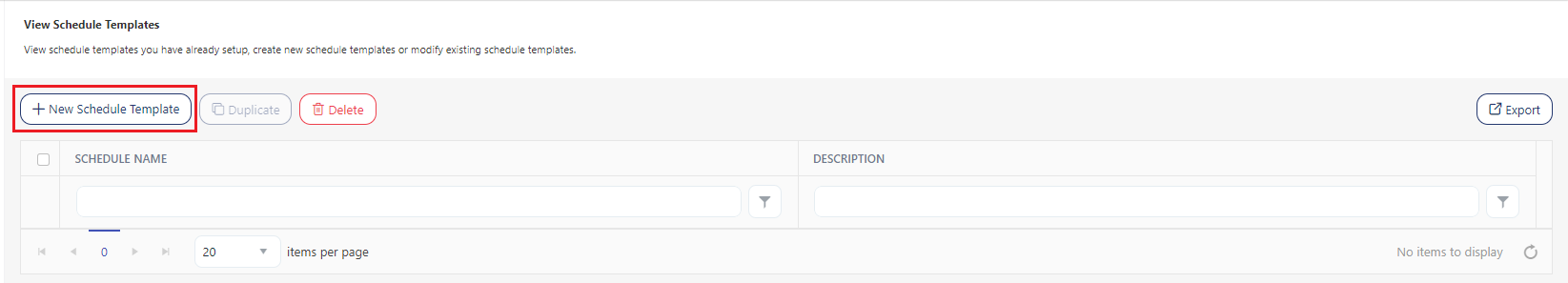 Click Save to save the schedule template. Use cancel to cancel the changes and to navigate back to the View Schedule screen.