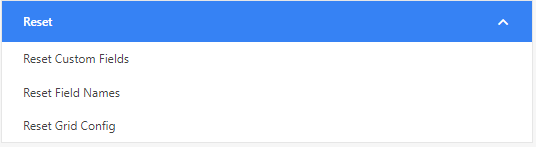The screen provides you with an option to reset custom fields, field names, and grid configuration.