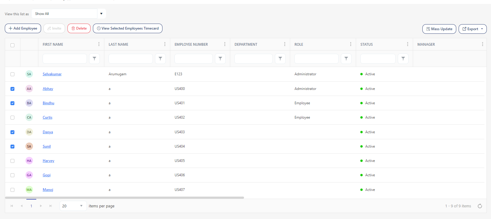 - Viewing all the Employees - An employee who has the Application Administrator attribute turned on can view all employees or an employee with a role that has the View All Employees permission can view all employees.